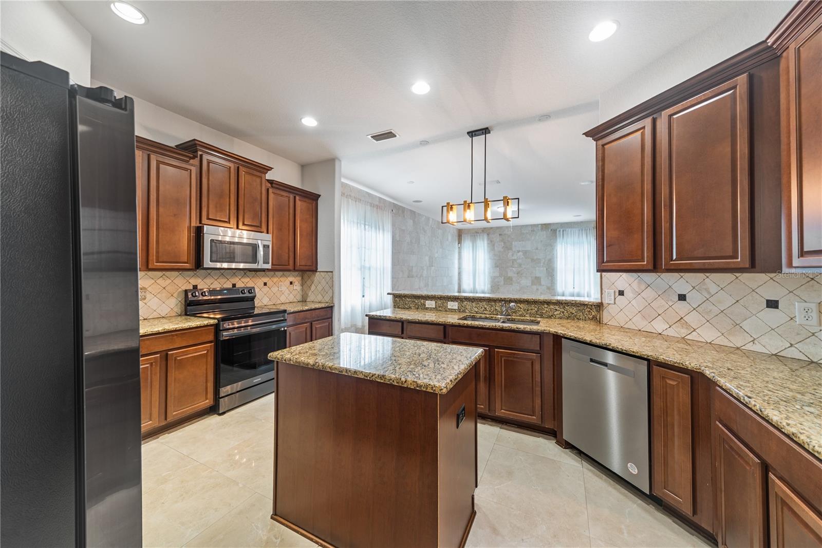 The tandem three-car garage offers additional storage and opens to a functional drop zone adjacent to a large laundry room with washer and dryer hookups (appliances not included).